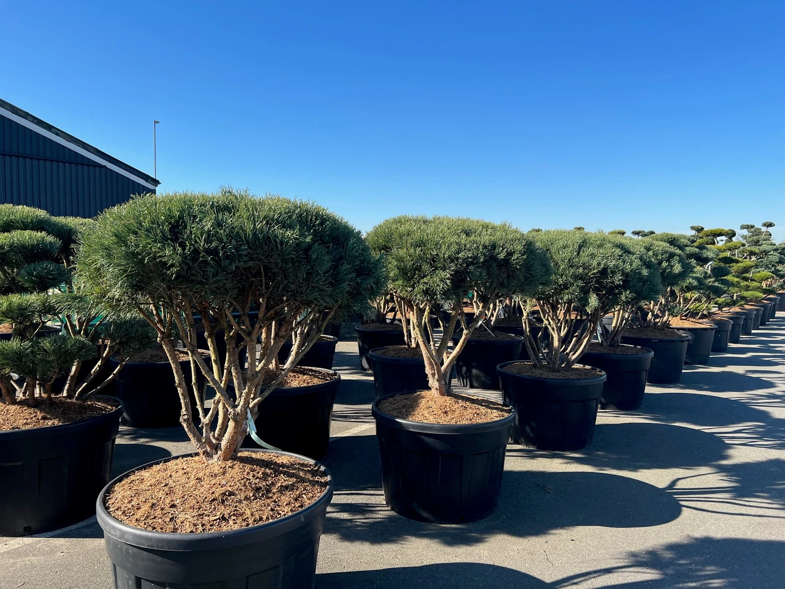 Sie können bei uns auch Niwaki-Bonsais kaufen: Gartenbonsais, die wir aus Japan importieren. Unser Sortiment besteht hauptsächlich aus Pinus parviflora 'Glauca' (Pinus pentaphylla), Taxus cuspidata 'Nana' und Ilex crenata 'Kin Me'.