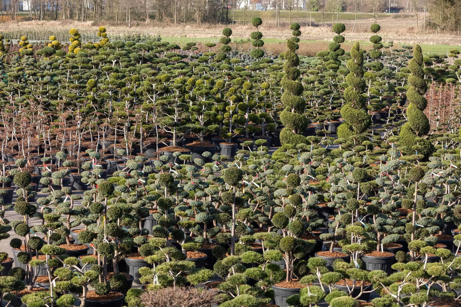 Die Baumschule hat eine Gesamtfläche von 180 Hektar. Auf ca. 35 Hektar züchten wir für Sie eine große Vielfalt an Gartenbonsais und Formgehölzen. Jeder von ihnen ist ein einzigartiger Blickfang für den Garten.